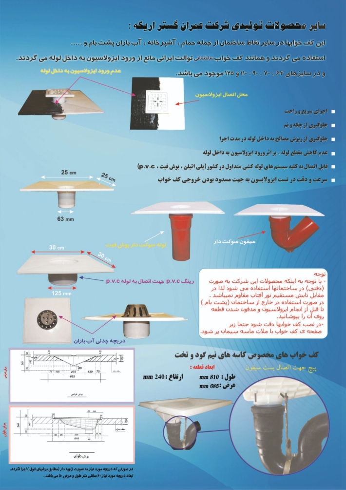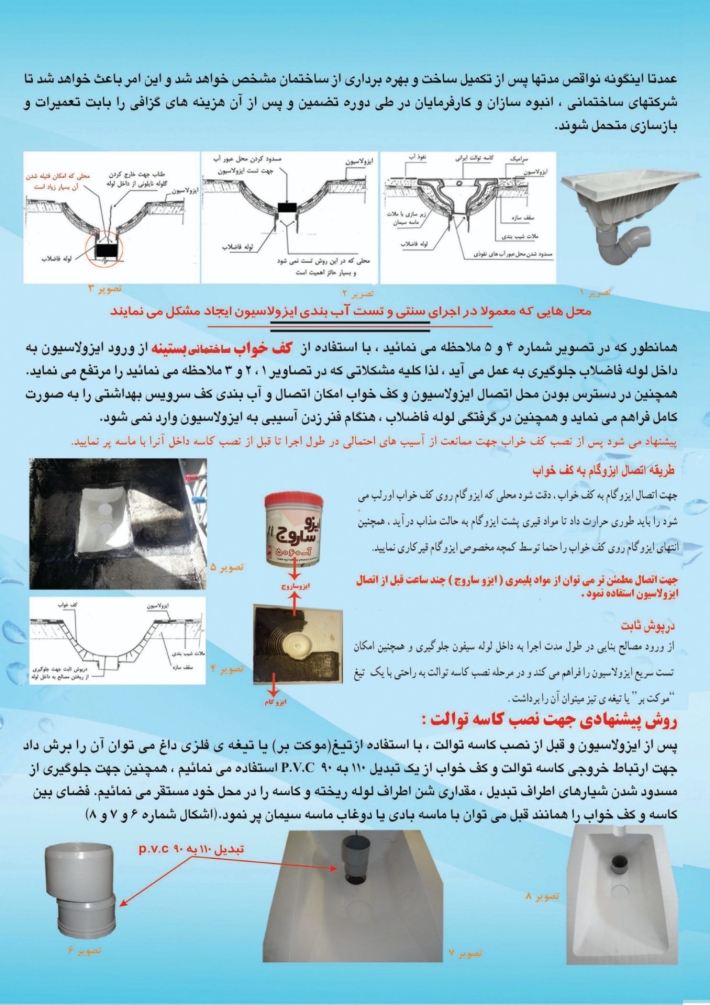 شرکت عمران گستر اريکه (بستینه) به عنوان طراح و توليد کننده انحصاري کف خواب صنعتي توالت ايراني اين روش را به عنوان راه حلي قطعي براي مشکل آب بندي و زير سازي توالتهاي ايراني عرضه مي نمايد...